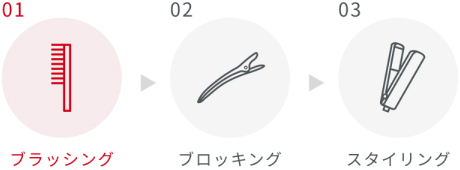 - 髪をブラッシングして、髪の絡まりをほぐす。