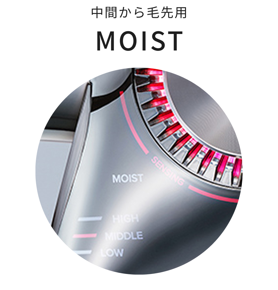 初めは普通の温風モード、中間でMOISTモードにして大半乾いたら最後はCOOLの弱で仕上げています。