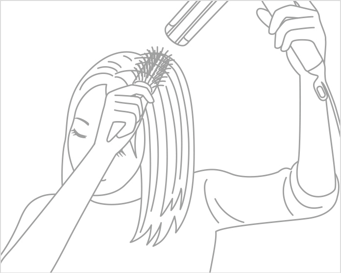 Move the brush toward the hair ends so that it goes along the roundness of the head. Brush the hair ends with the image of natural curling.