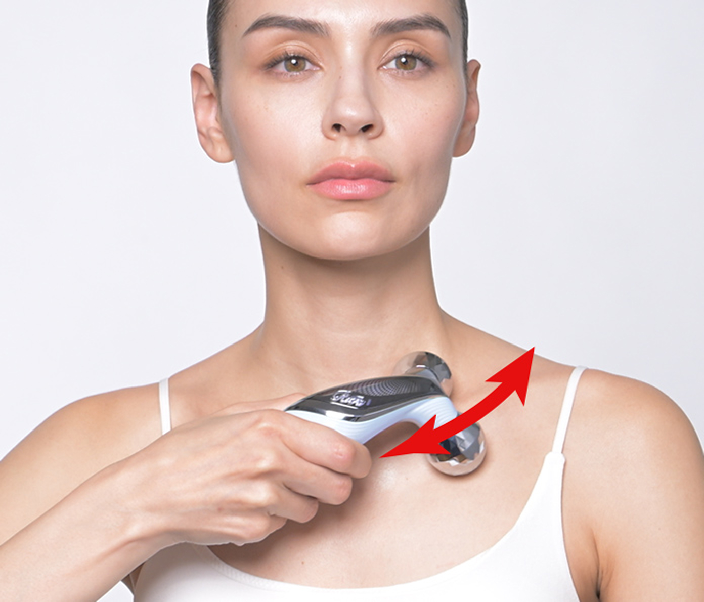 Roll back and forth along the collarbone, moving outward. (Roll 10 times)