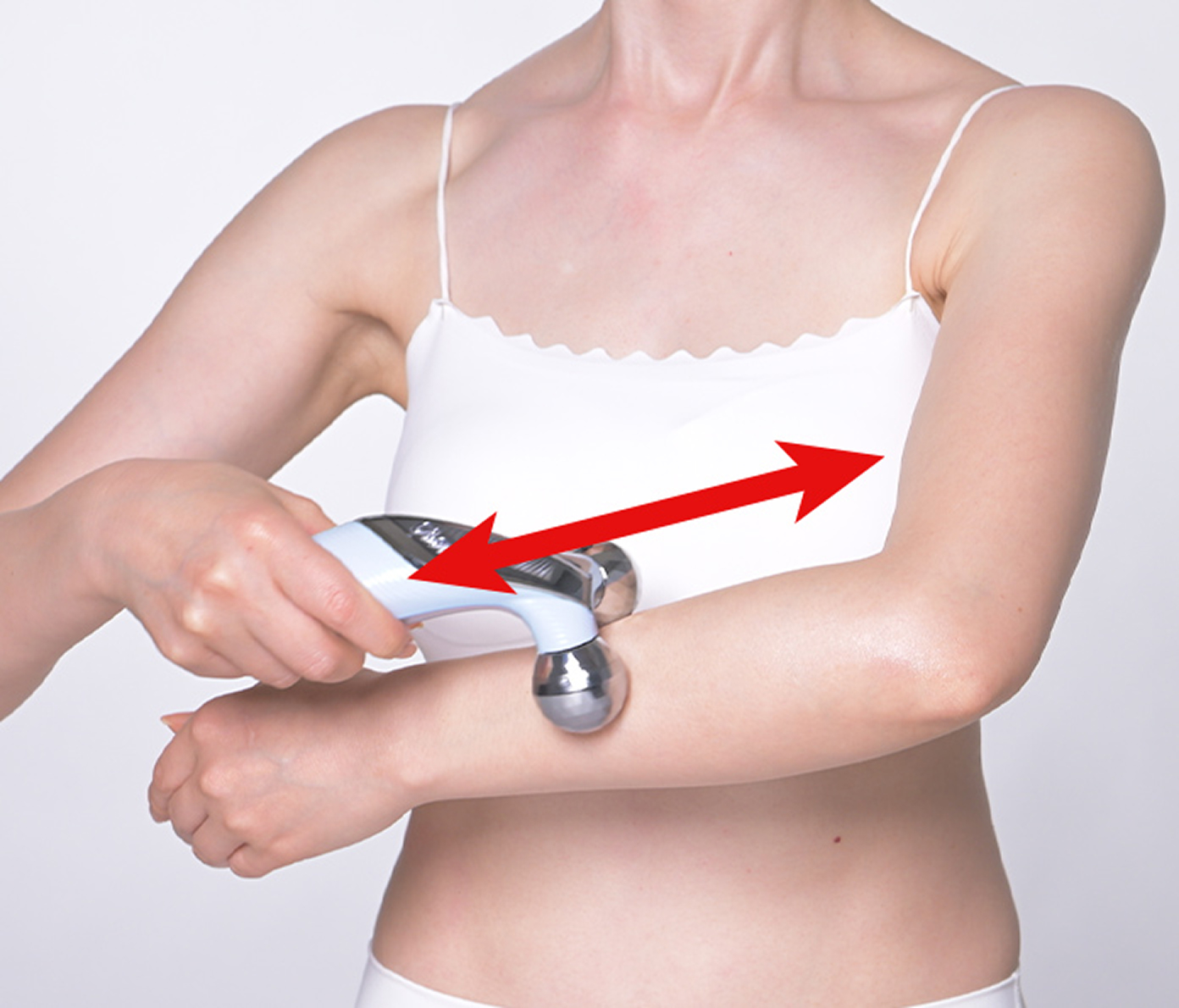 Roll back and forth between the elbow and underarm. (Roll 5 times x 3 sets)Note: Be careful not to pinch too much.