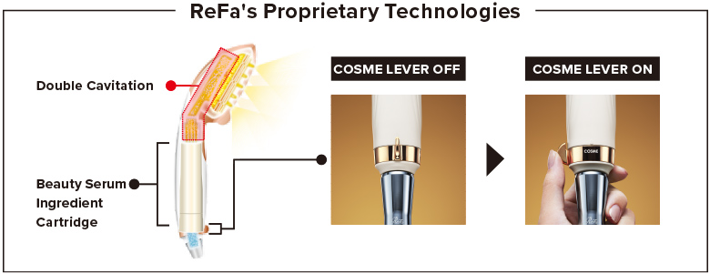 When you turn the COSME LEVER on, the beauty serum shower created by the fusion of fine bubbles and beauty serum ingredients1, 2, 3 gently envelops your skin.