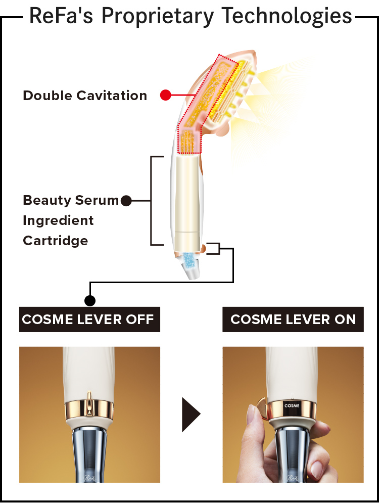 By attaching the beauty serum ingredient cartridge to the handle and turning on the COSME LEVER,