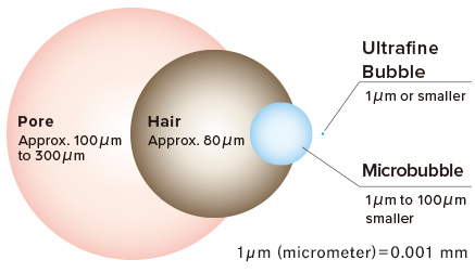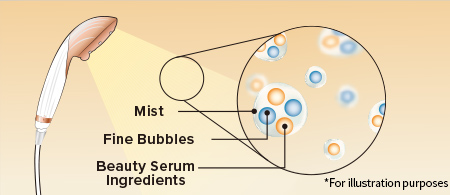 Fine bubbles are divided into two types according to size: ultrafine bubbles and microbubbles. These two types of bubbles, together with beauty serum ingredients, fill the water and reach your entire body simply by taking a shower.