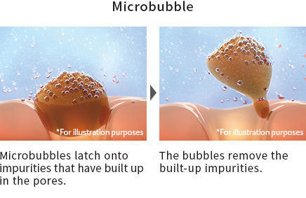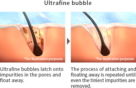 Ultrafine bubbles gently flush out your pores to remove impurities from deep inside of them, while microbubbles unclog pores by latching onto impurities and excess sebum, floating them away.