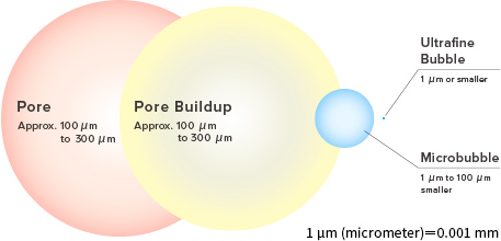 vast quantities of ultra fine bubbles are produced in the water all at once.