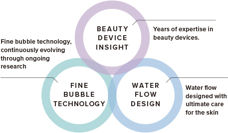 This idea was brought to life through ReFa's continuously refined fine bubble technology, water flow design,