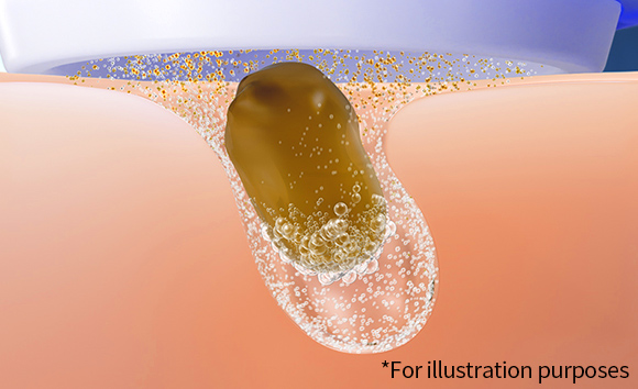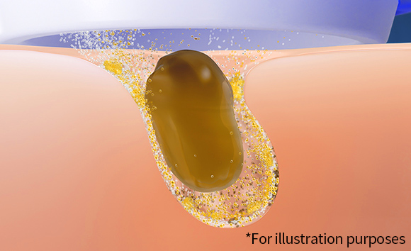 By absorbing these dirt particles while floating to the skin's surface, the bubbles gently remove it from the skin.