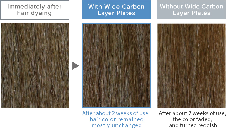 The Wide Carbon Layer Plates reduce the pigment destruction and coloring agent leakage due to heat damage.1