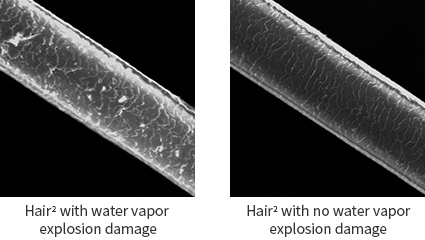 When water comes into contact with a hot plate, it explodes into vapor.1 This damages the cuticles. The three-layer structure of the Wide Carbon Layer Plates transfers the heat more mildly, preventing water vapor explosions1 and reducing the damage to your hair.