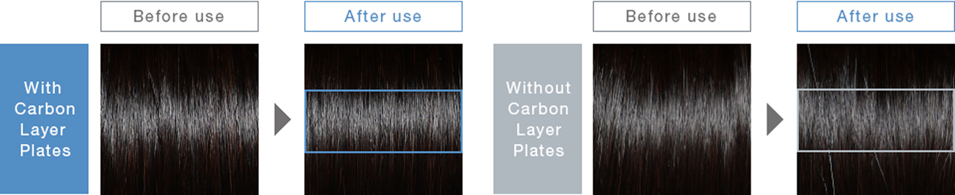 The surface of the Carbon Layer Plates is covered with a low-rebound coating that gently grips your hair.
