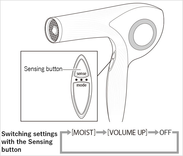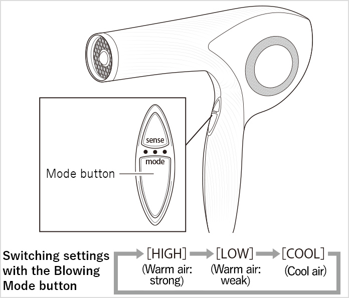 An effective way to make your hairstyle last longer is to style your hair with the Blowing Mode on LOW and to set your hairstyle with the Blowing Mode on COOL.