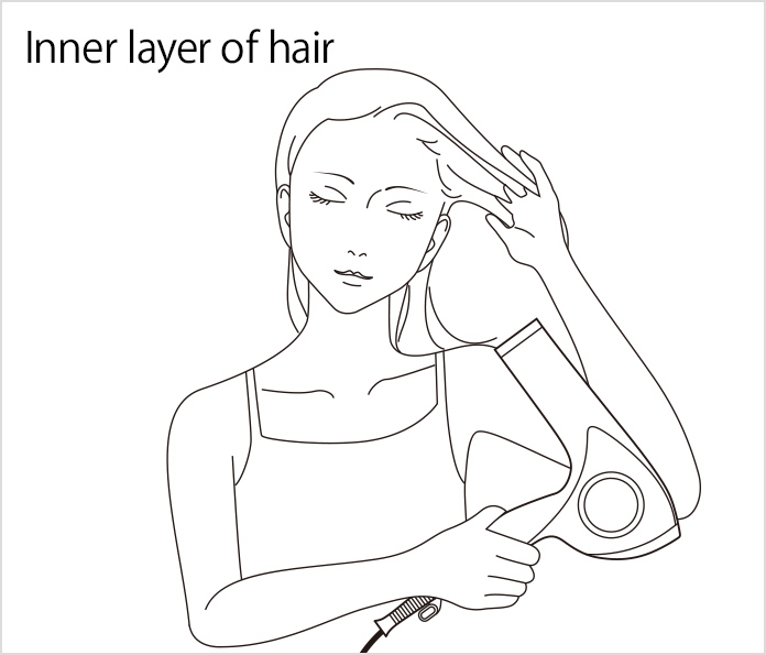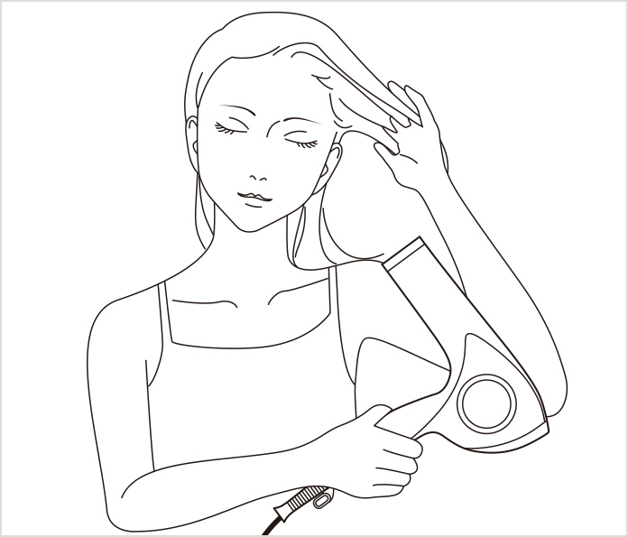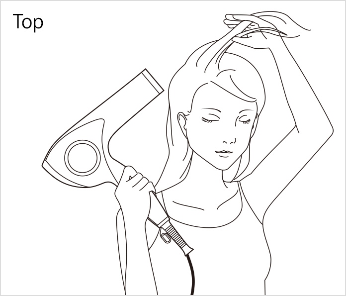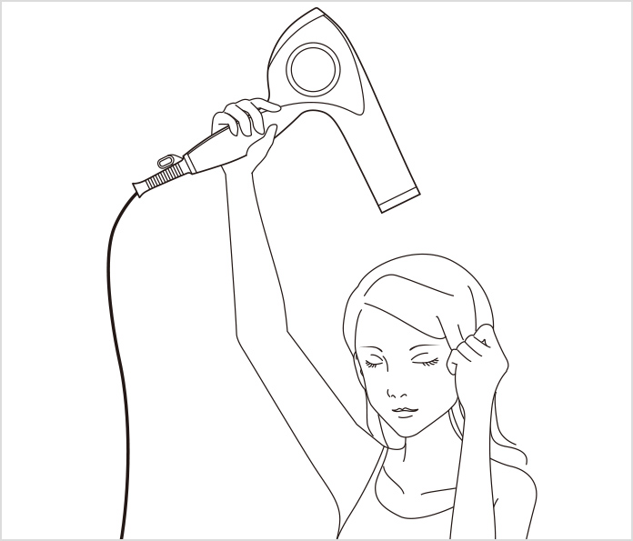 (1) Lift your hair from the roots and blow air upward from below.