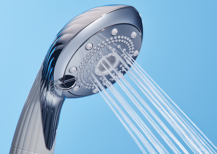 A slim, densely concentrated water flow released from a stainless steel plate. Even those with sensitive skin can fully enjoy showering in it.