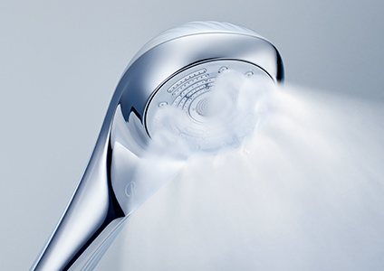 A slim, densely concentrated water flow released from a stainless steel plate. When you want to have a gentle shower and enjoy showering in it.