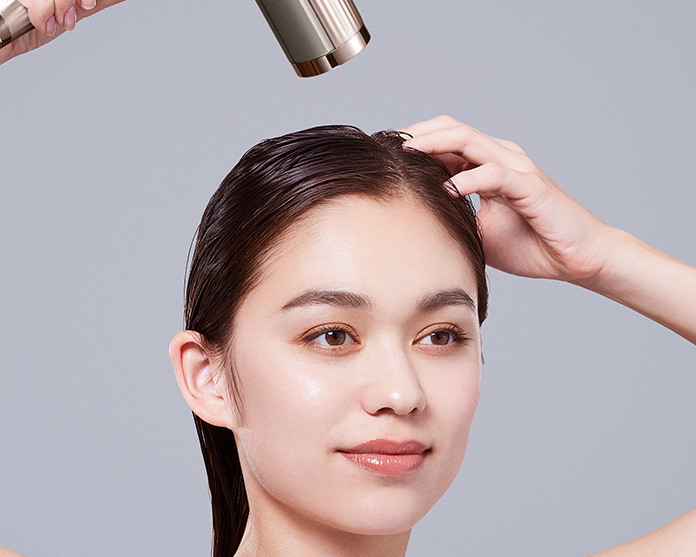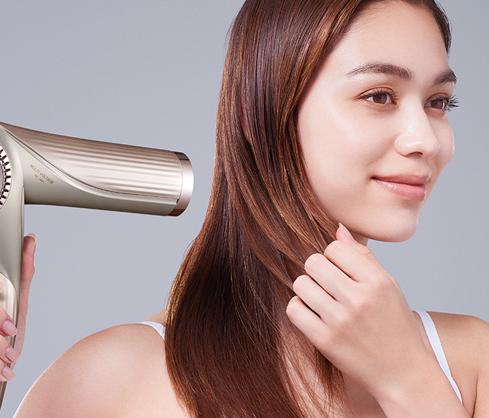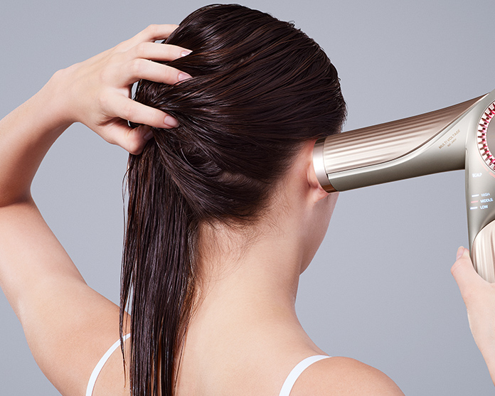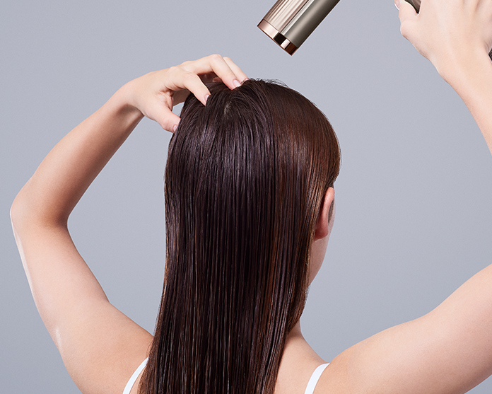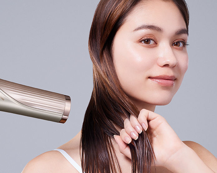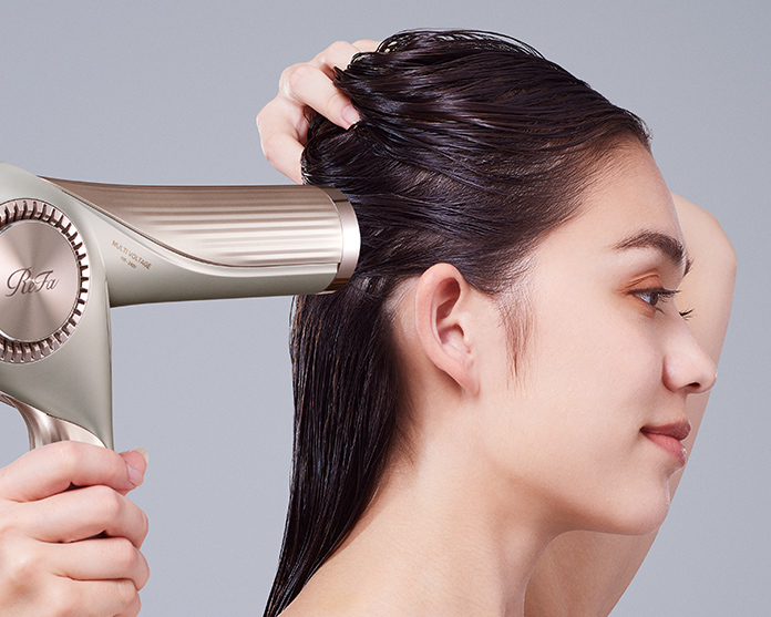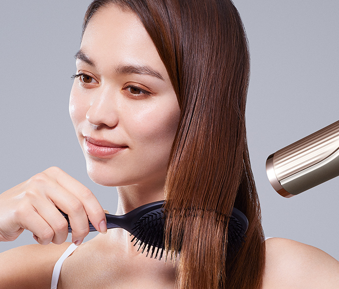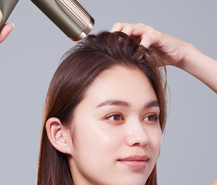 ブローの際は、ブラシを使い髪にテンションをかけながら、形をつくり、冷風で仕上げてスタイルをキープ。