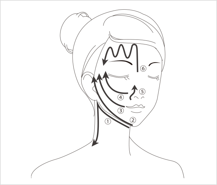 <step.4>①〜⑥の順に1回ずつあて流します。