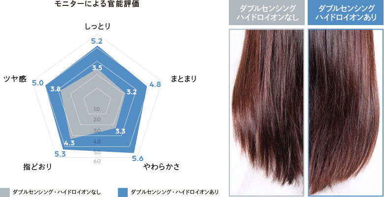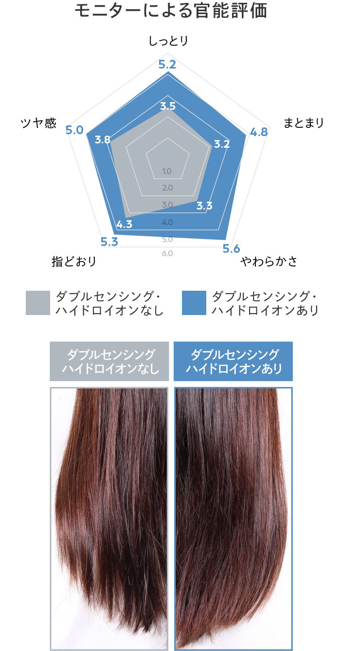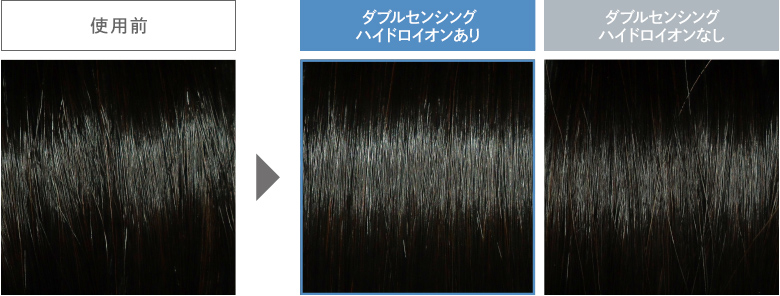 ダブルセンシングで髪の熱ダメージを抑えながら、ハイドロイオンをしっかりと届けることで、