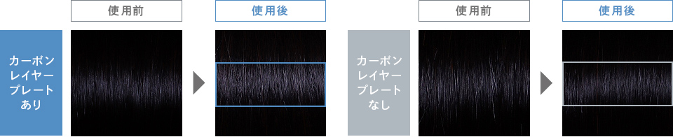 カーボンレイヤープレートが髪の水分蒸散を抑え、うるおいをキープ。