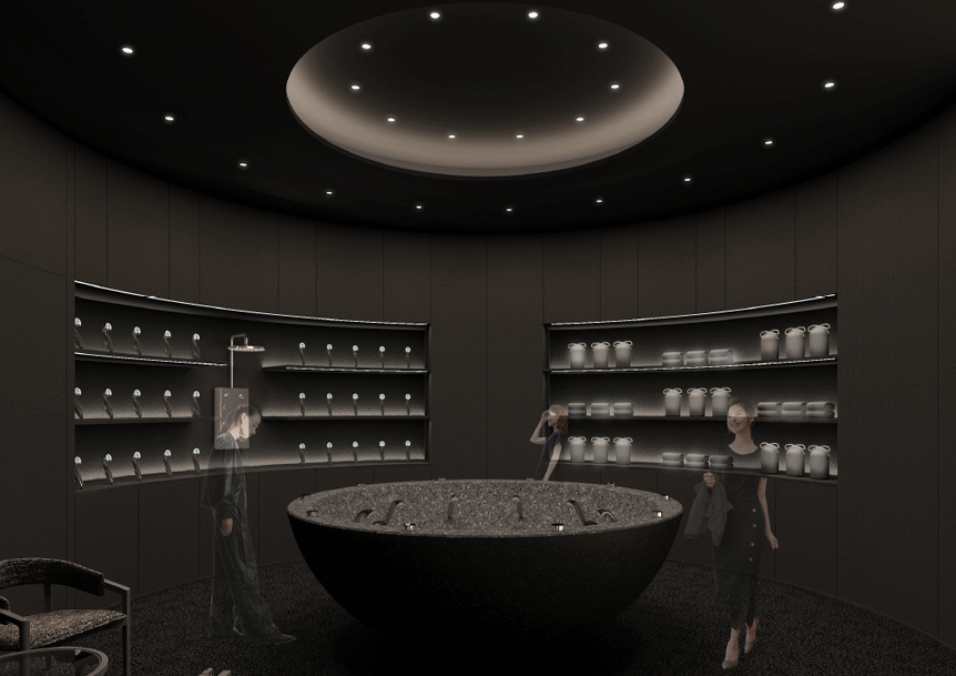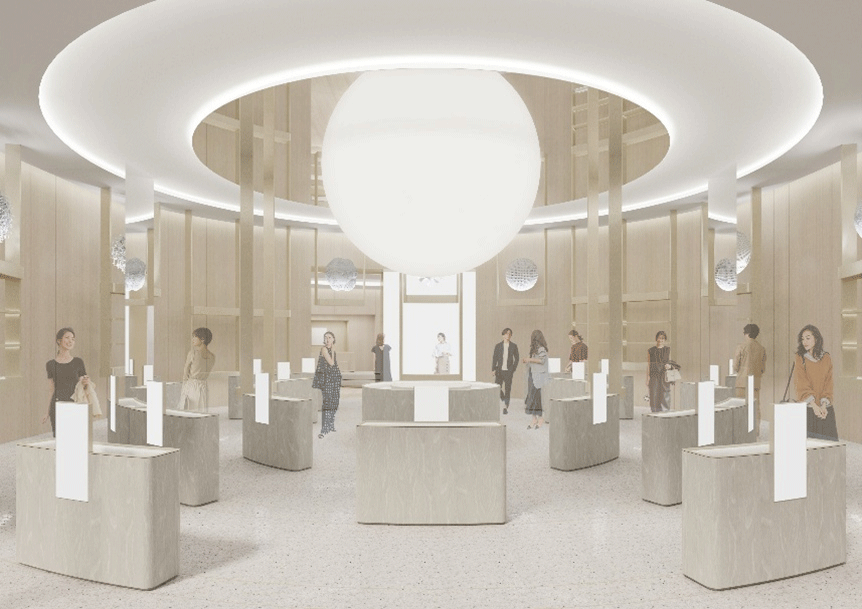 自然とテクノロジーが融合した内装となっており、店内中央に配置されたスフィアは、ReFaの”生命力あふれる美”を鼓動として表現し、訪れる人を特別な空間へと誘います。