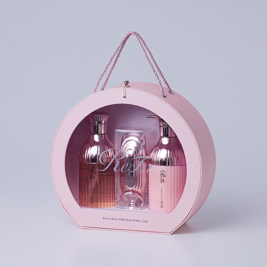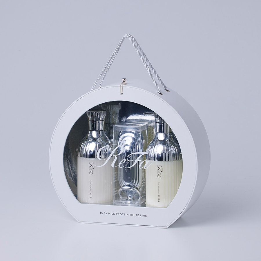 ReFa MILK PROTEIN HAIR CARE SERIESの各商品を、ラウンド型の特別なオリジナルギフトBOXに詰め込み、さらに、ReFa MILK PROTEIN SHAMPOOを象ったオリジナルチャーム※をセットにしたスペシャルセットです。