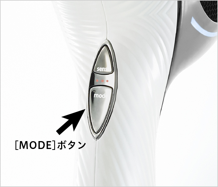 [MODE]ボタンを押して、モード(風量の強弱)を選択します。ボタンを押すたびに切り替わります。