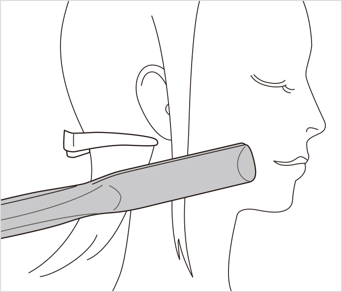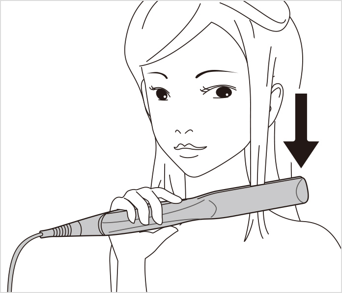 • (2)カールを付けたい位置をはさみます。