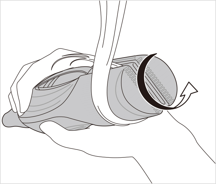 内巻きにするときを例に説明します。外巻きにするときは手順(3)で回転方向を外側にしてください。