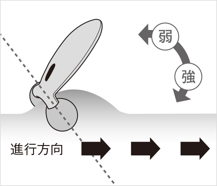 ローラーが肌を吸い上げる強さは、ハンドルを持つ角度で調整できます。