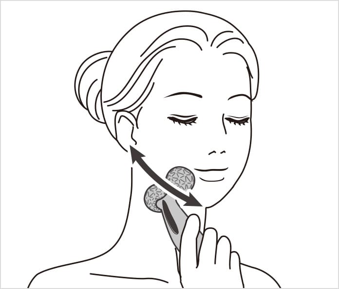 ※肌がローラーに挟まれやすい部位です。ローラーを肌に当てる角度と強さを調整してローリングしてください。