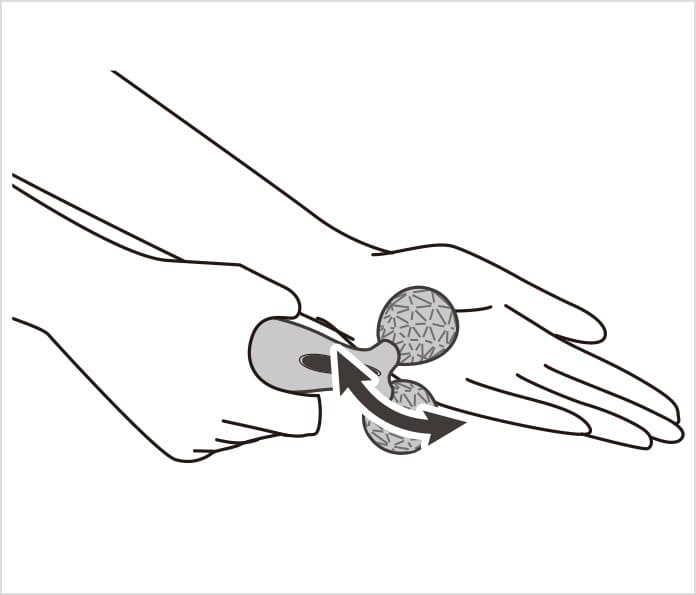 親指と人差し指の間を挟み込み、手の甲側のボールで半円を描くようにローリング。