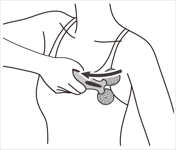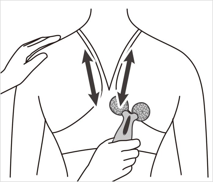 鎖骨下のくぼみにローラーを当てるようにローリング。