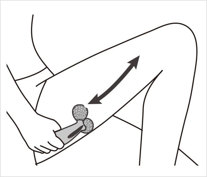 膝の裏からおしりの下にかけて、太ももの後ろをローリング。