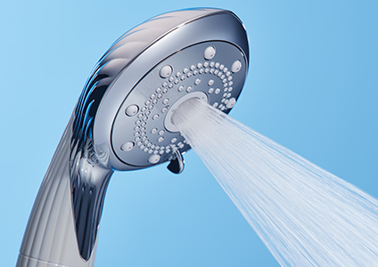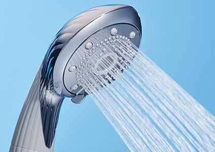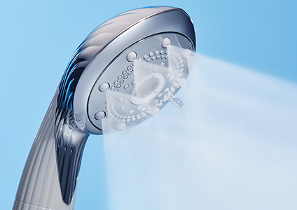 ステンレス板から出る細くて密度の高い水流。敏感な肌の人がたっぷり浴びたいときにも。