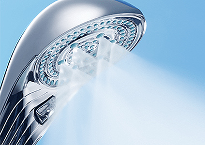 もっとも水圧の強い水流。頭皮などのすっきり洗い流したい部位に。
