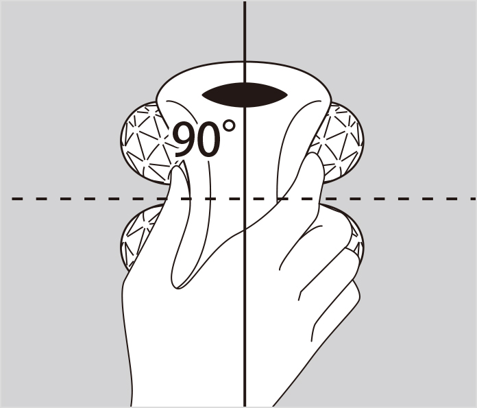 ハンドルに対してローラーの軸が90°になるように持ちます。