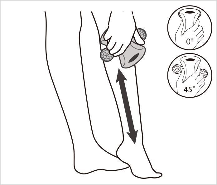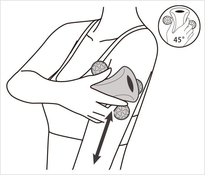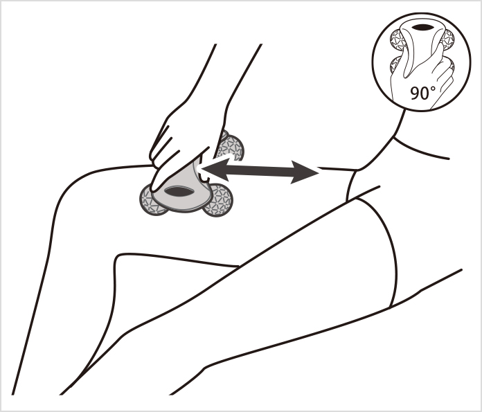 ※肌がローラーに挟まれやすい部位です。ローラーを肌に当てる強さを調整してローリングしてください。