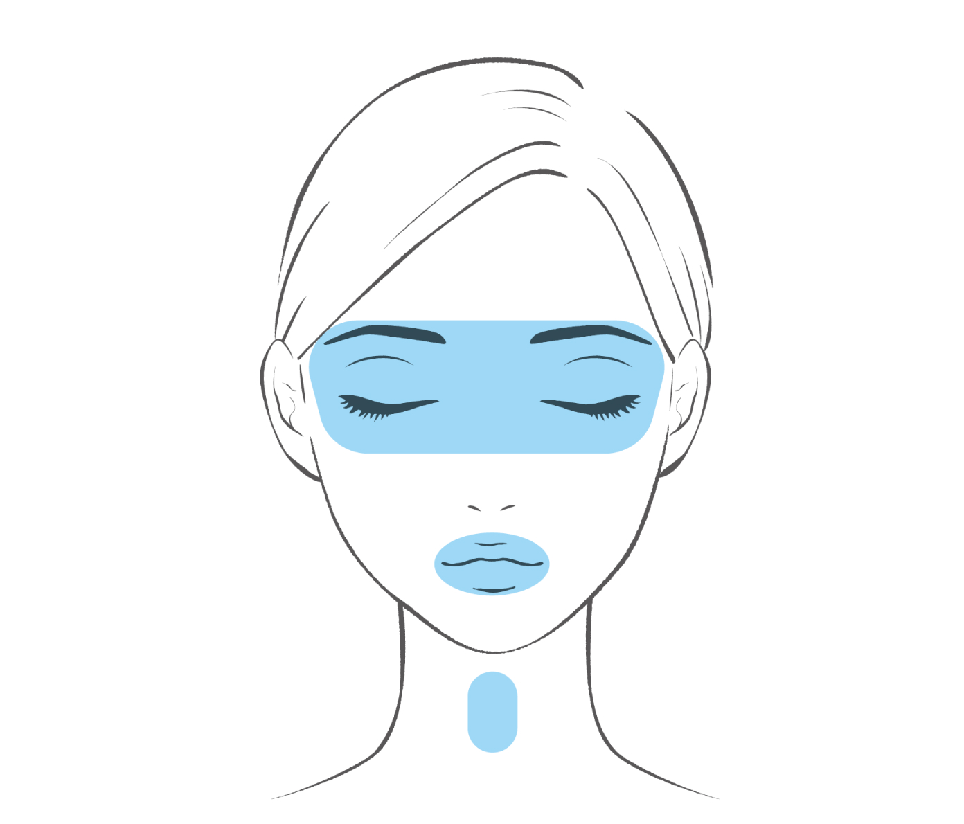 轻轻置于颧骨下方,保持不动。(约1分钟)