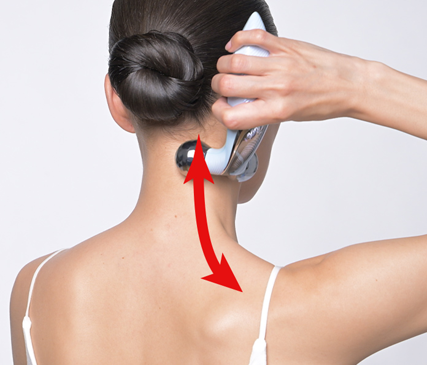 从肩部与脖子根沿着后颈部朝头部方向上下滚动。(往返10次)