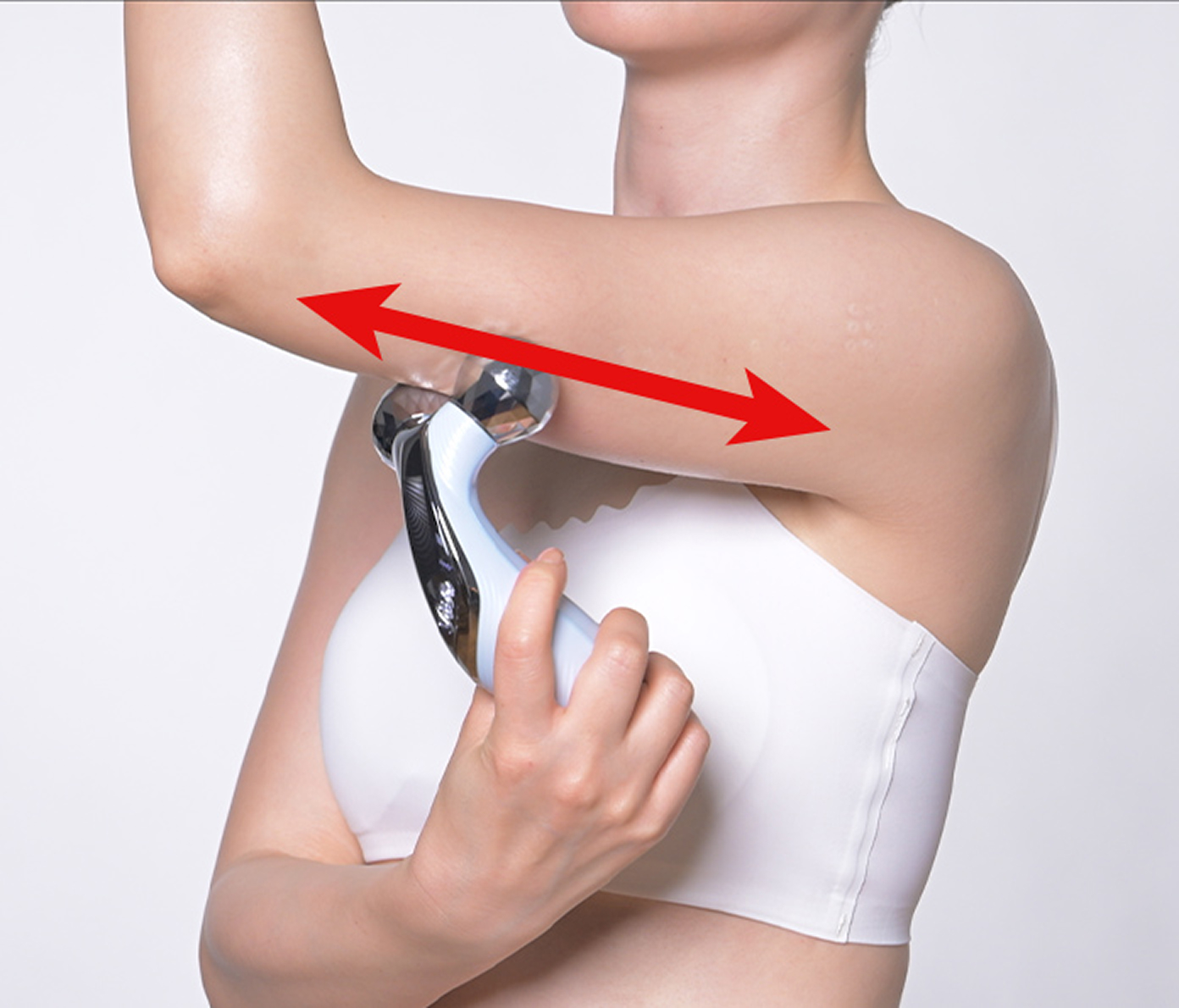 于手肘与腋下之间滚动。(往返5次×3组)※注意不要夹得太紧。