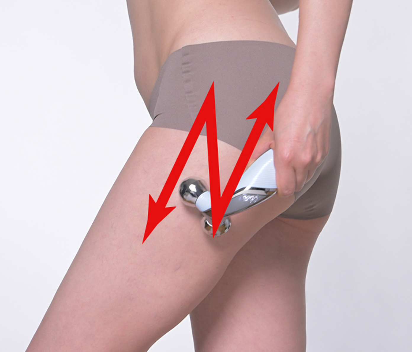 skin模式:沿着大腿向臀部滚动。※请直接于肌肤上使用。