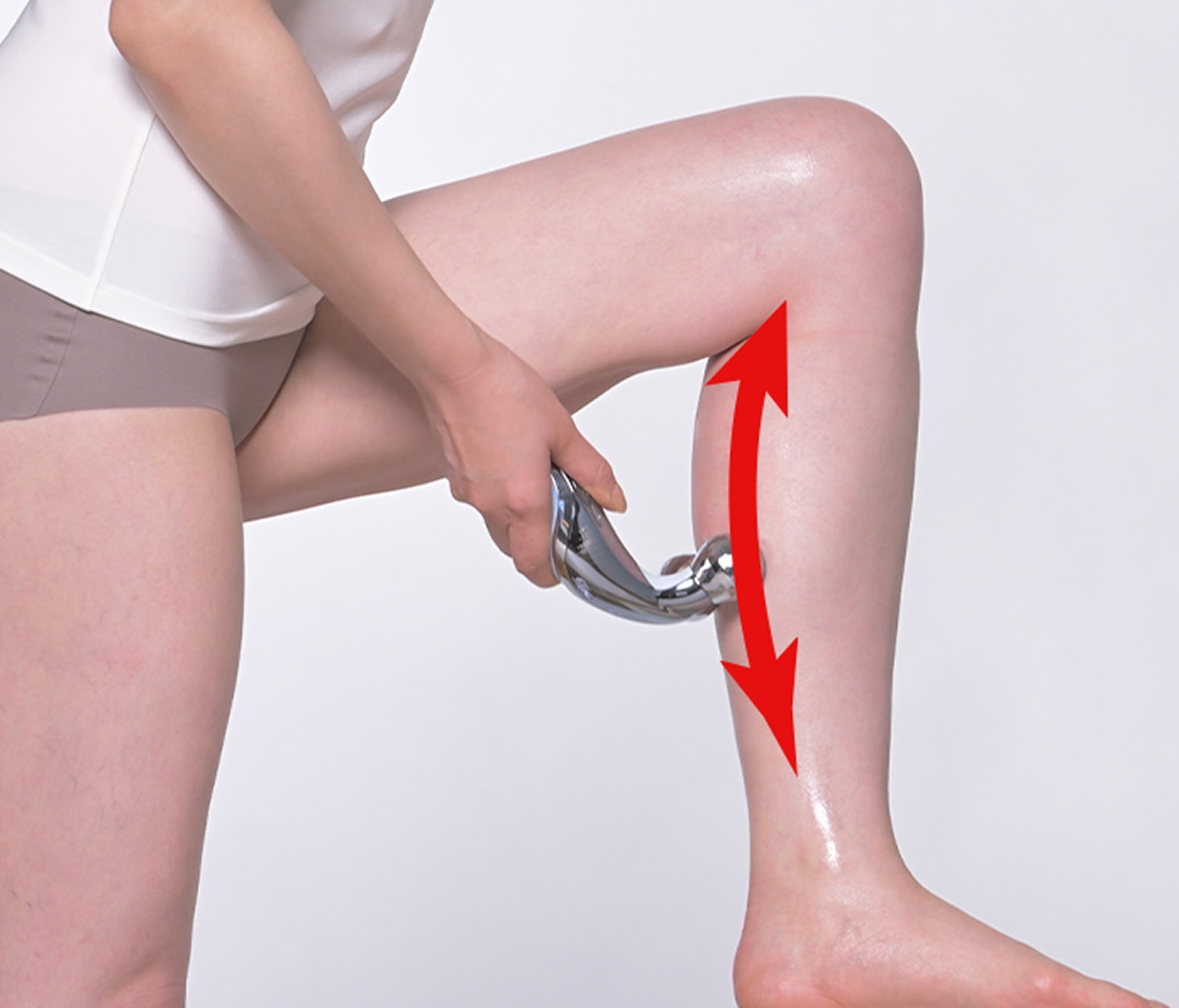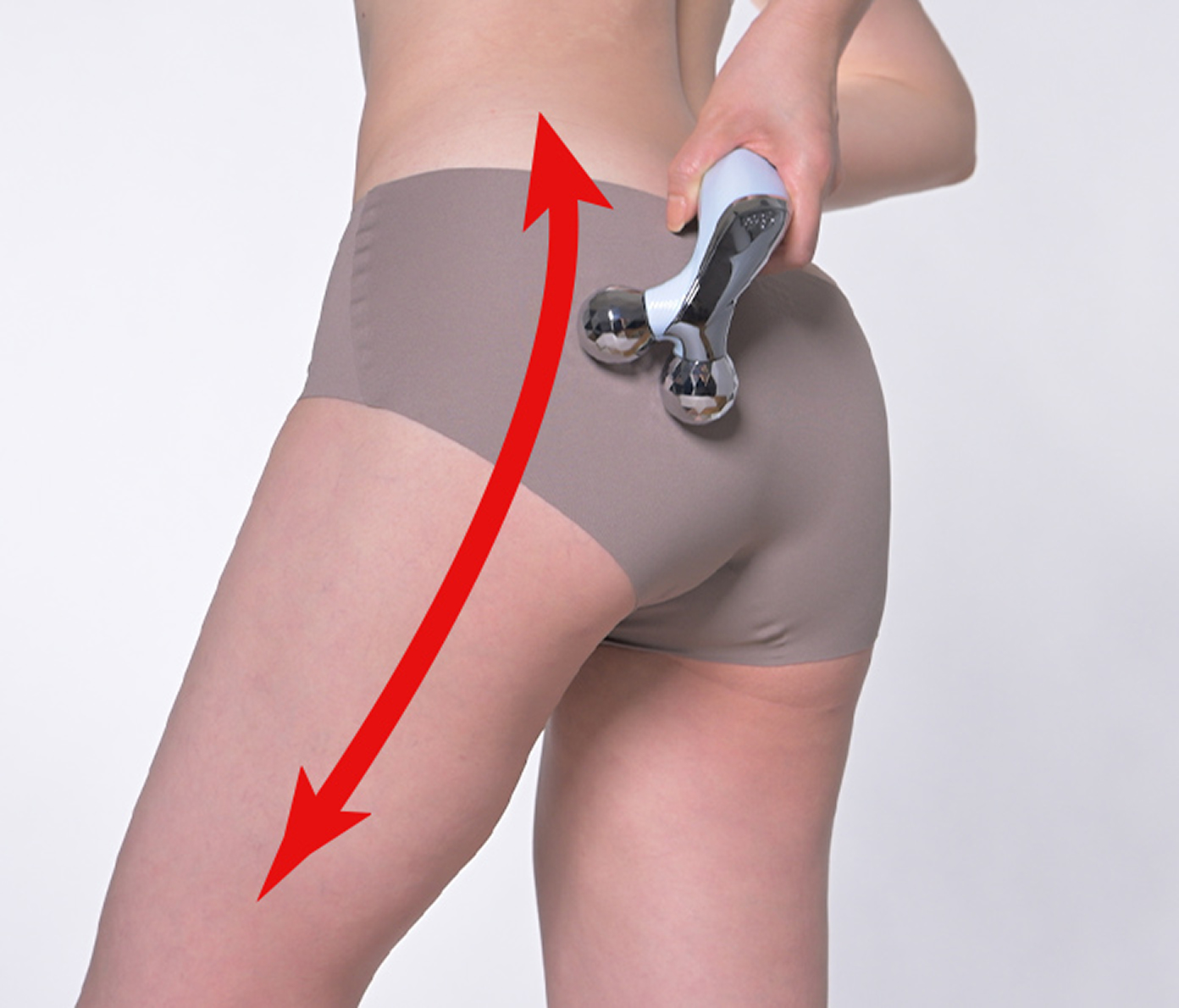 从大腿根部滚动至腰部。(往返5次×3组)※请直接于肌肤上使用。