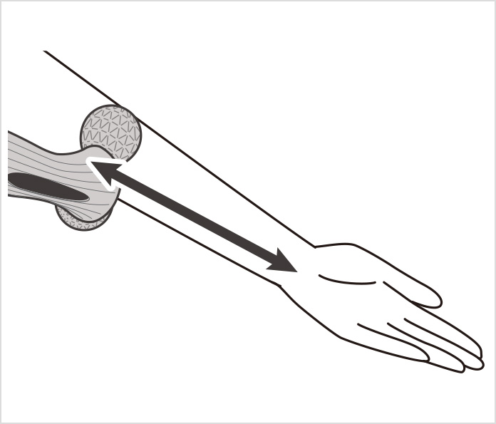 像是要夹住内侧的肘部下侧一样,从手腕朝向肘部滚动。