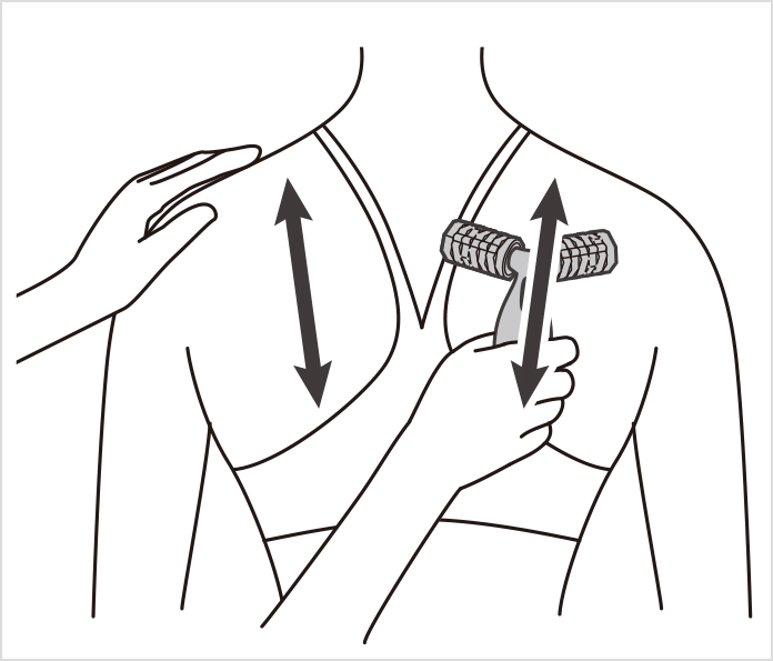 滚动按摩自己难以护理的背部。沿着肩胛骨上下滚动。