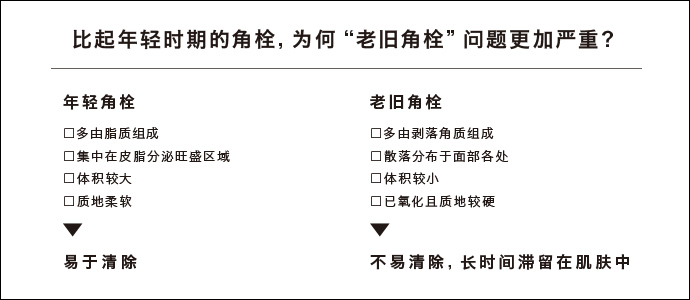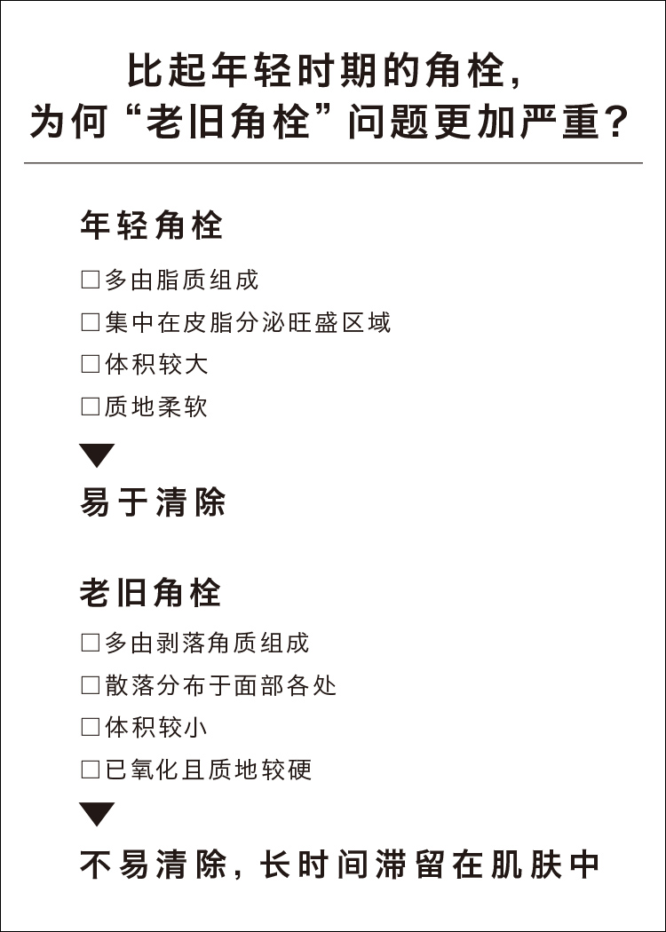 毛孔中的角栓会随时间氧化变硬,演变为“老旧角栓”,