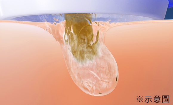 紧密贴合松弛毛孔,从极近距离以水流浮起污垢,并瞬间吸除,连顽固的老旧角栓也能一并清洁。