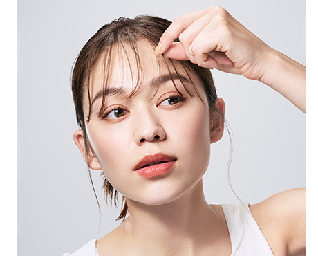 取少量于指尖,涂抹在刘海及脸周发丝,以打造造型。