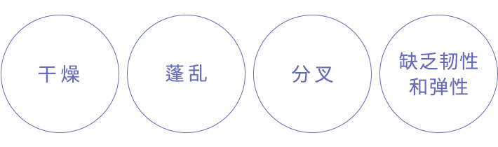 头发内部的蛋白质流失,导致头发蓬乱难以整理。