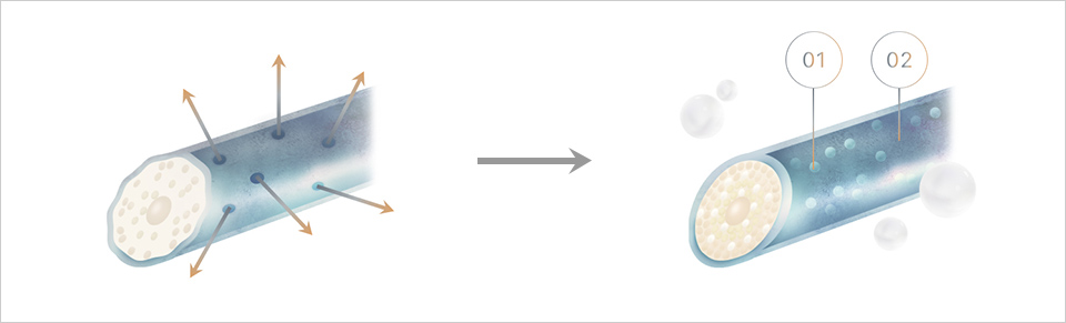 发丝一旦出现空洞,水分便无法滞留,会迅速流失,即使补水,也难以长久保持。