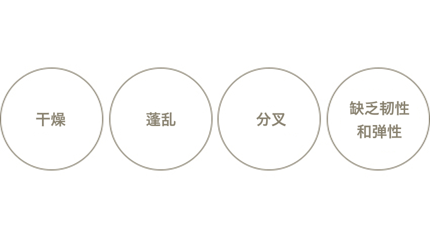 归类为五大问题:干枯、毛躁、染后褪色、卷翘、头皮干燥,